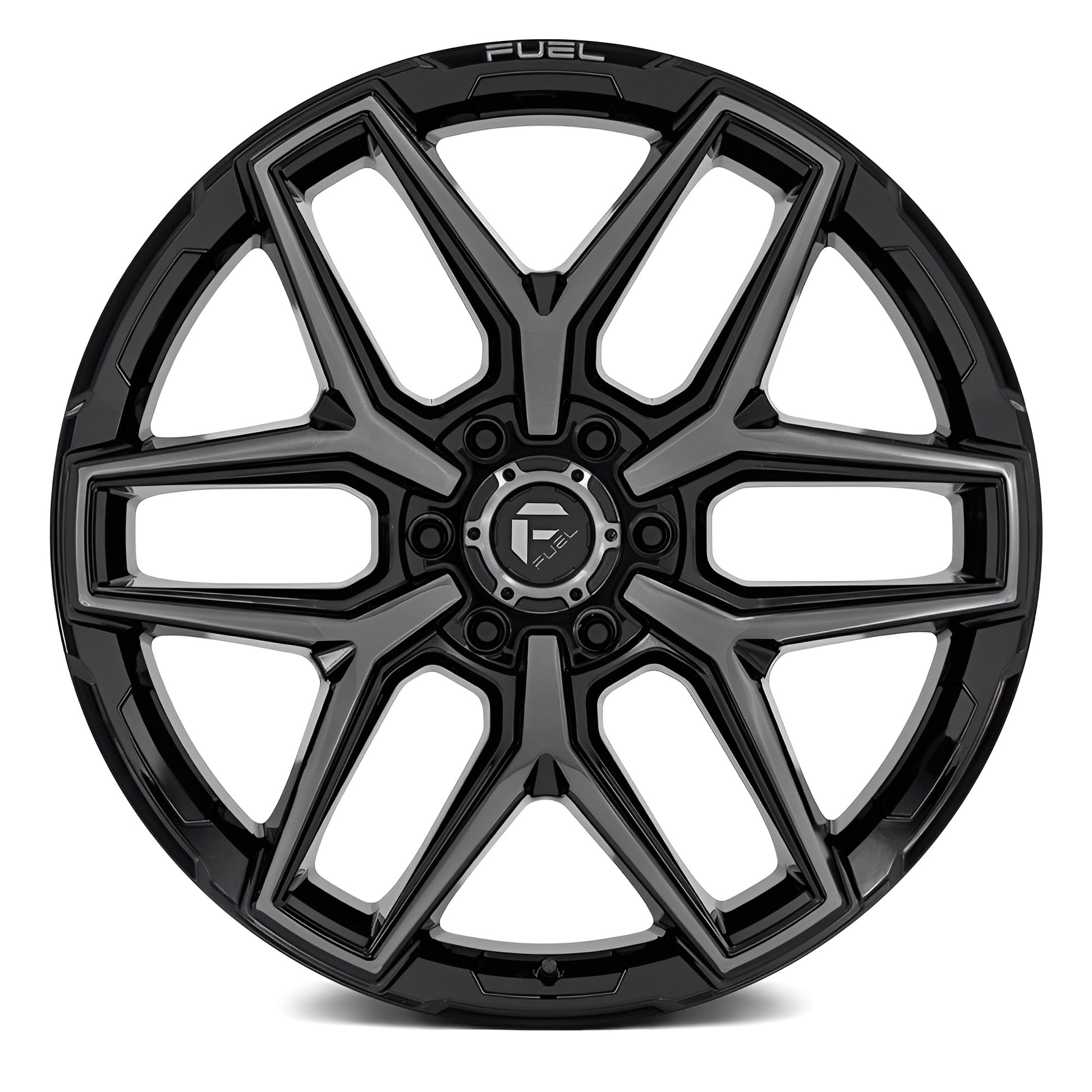 The Fuel Flux 20x10 –18mm is a wheel that delivers a bold yet sophisticated presence for truck owners who want to elevate their build with modern styling and dependable performance. With its gloss black finish and gray-tinted machined face, the Flux blends aggressive design with premium refinement. The subtle gray tint over the precision-machined spokes creates a unique look that shifts with the light, offering a sleek, upscale appearance without being overly flashy.