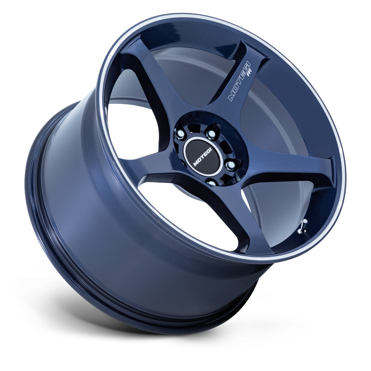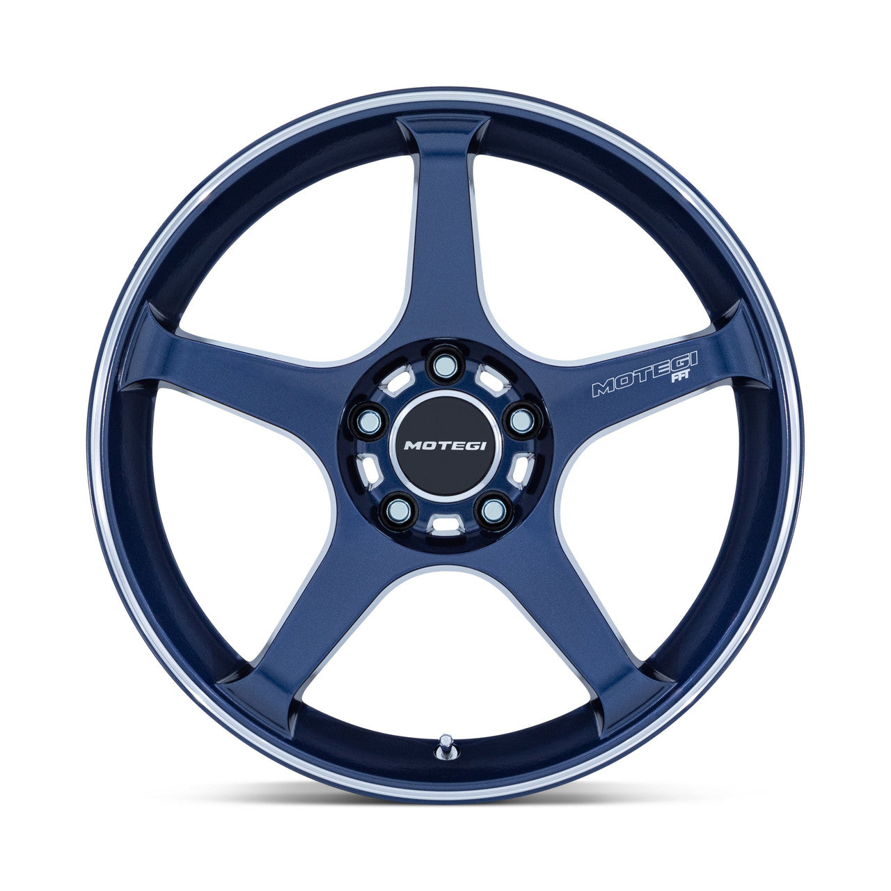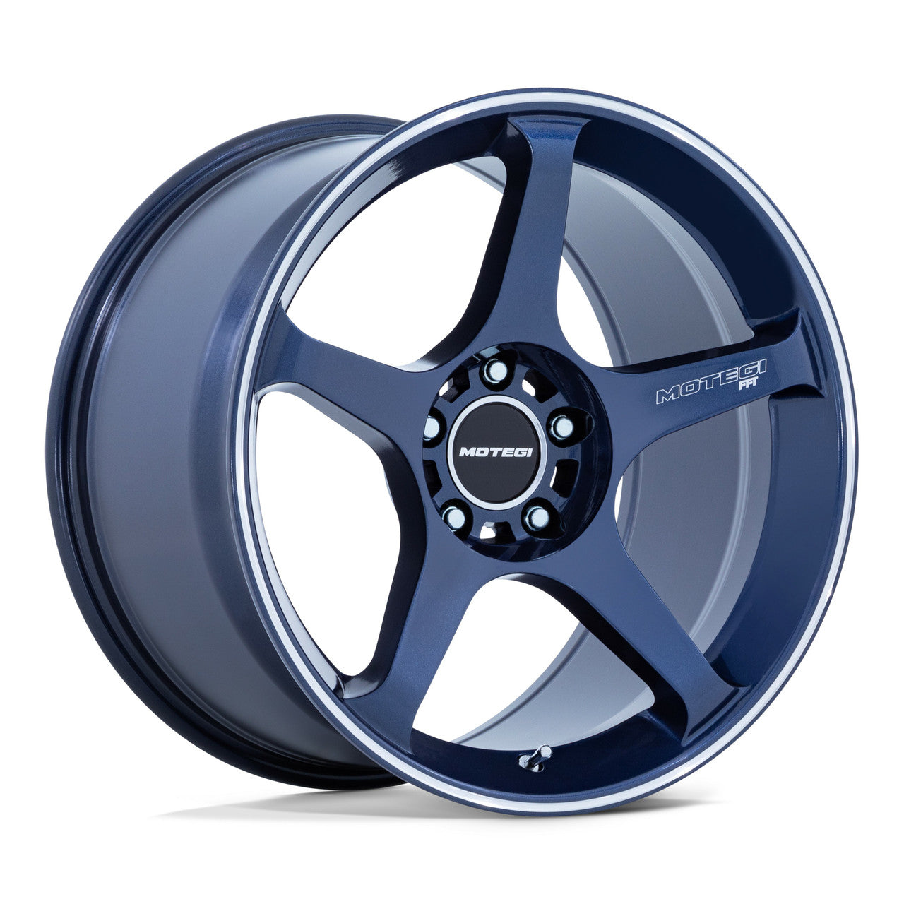The Motegi MR159 Battle V in 18x9.5 +25mm with a 5x114.3 bolt pattern is an aggressive and stylish wheel built for enthusiasts who value both performance and bold aesthetics. Finished in obsidian blue this wheel makes a strong visual statement while delivering high-end functionality, thanks to its advanced flow-formed construction.