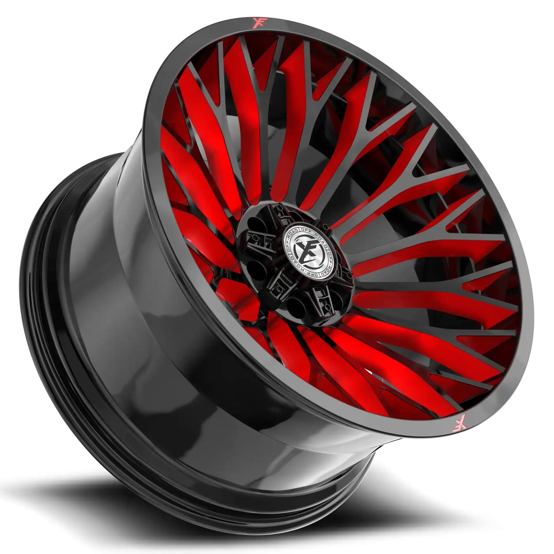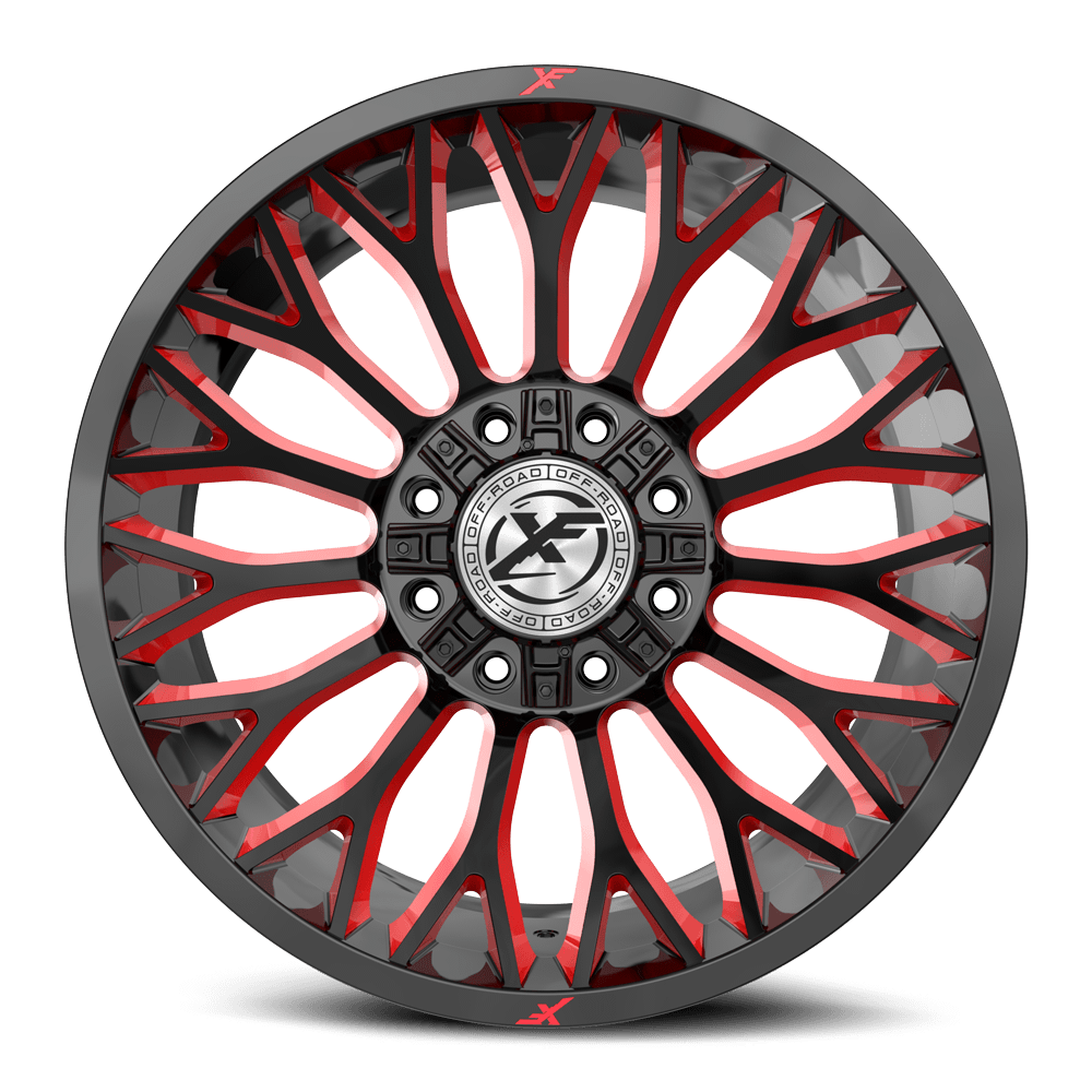 What truly separates the XF-237 from others in its class is its Gloss Black finish accented with Red Milled spokes. This finish gives the wheel a strong visual impact, perfect for those who want to make their vehicle stand out in any crowd. The red milled edges add an aggressive, custom-built look that’s especially popular in the lifted truck scene, making this wheel ideal for show trucks and daily drivers alike.